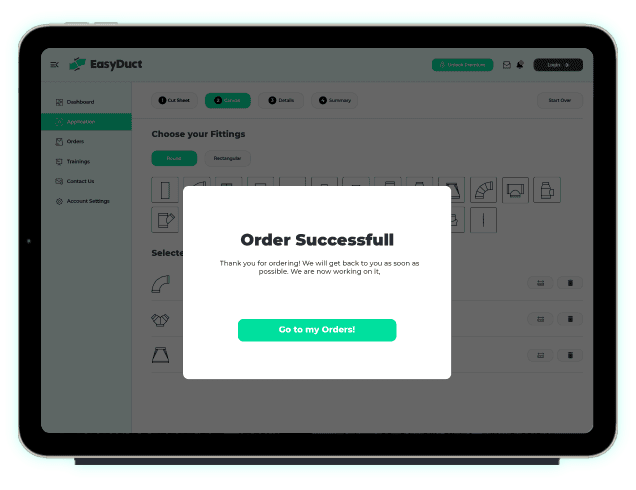EasyDuct App is optimized for an iPad so you can take it wherever you go. Save tons of time by updating an estimate with actual measurements on-site. Draw a run to make sure you have everything. And send your order in real time instead of waiting to get back to the office.